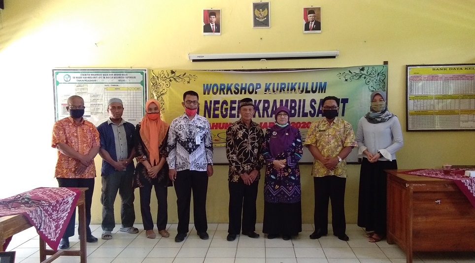 Deskripsi : Pelaksanaan workshop kurikulum di SDN Krambilsawit pada tanggal 16 Juni 2020 dihadiri pengawas SD Ibu Heny Kusharyati, M.Pd
