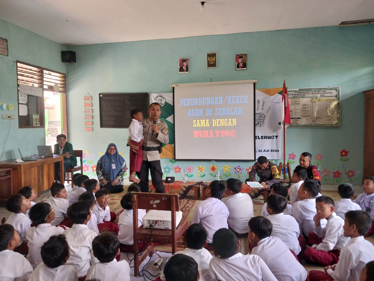 Deskripsi : Sosialisasi Anti Perundungan dan Kekerasan di SDN Krambilsawit Kamis, 18 Juli 2024
