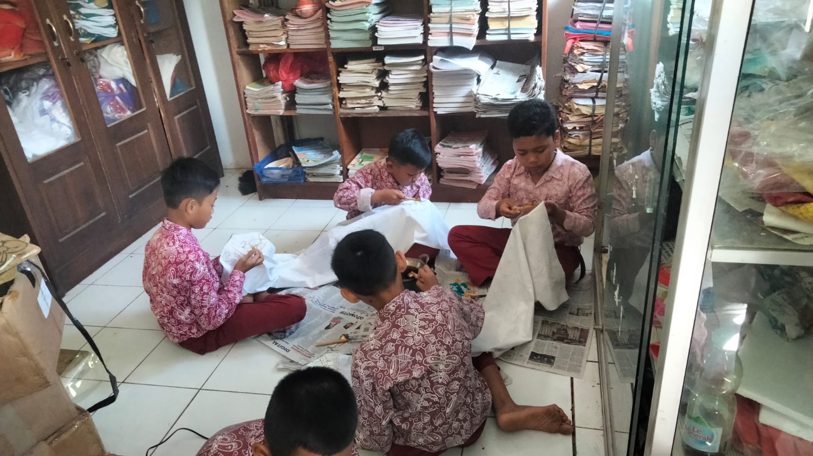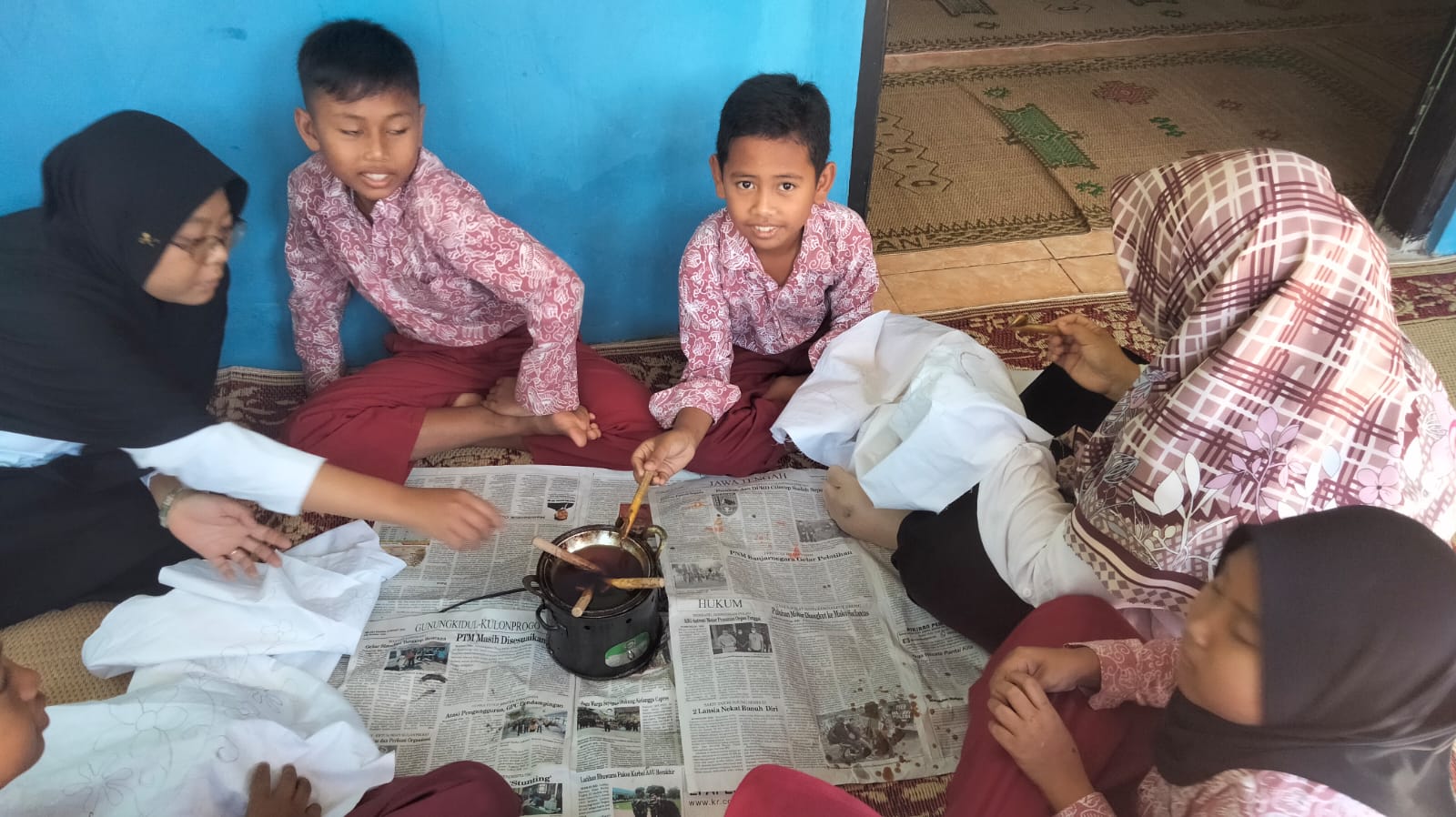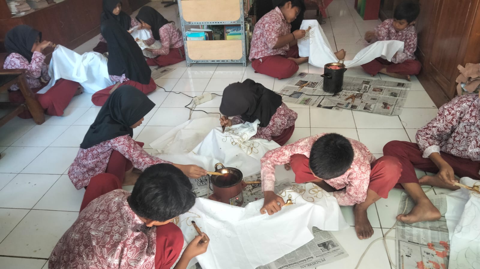 Deskripsi : Kegiatan pembelajaran muatan lokal membatik kelas 4