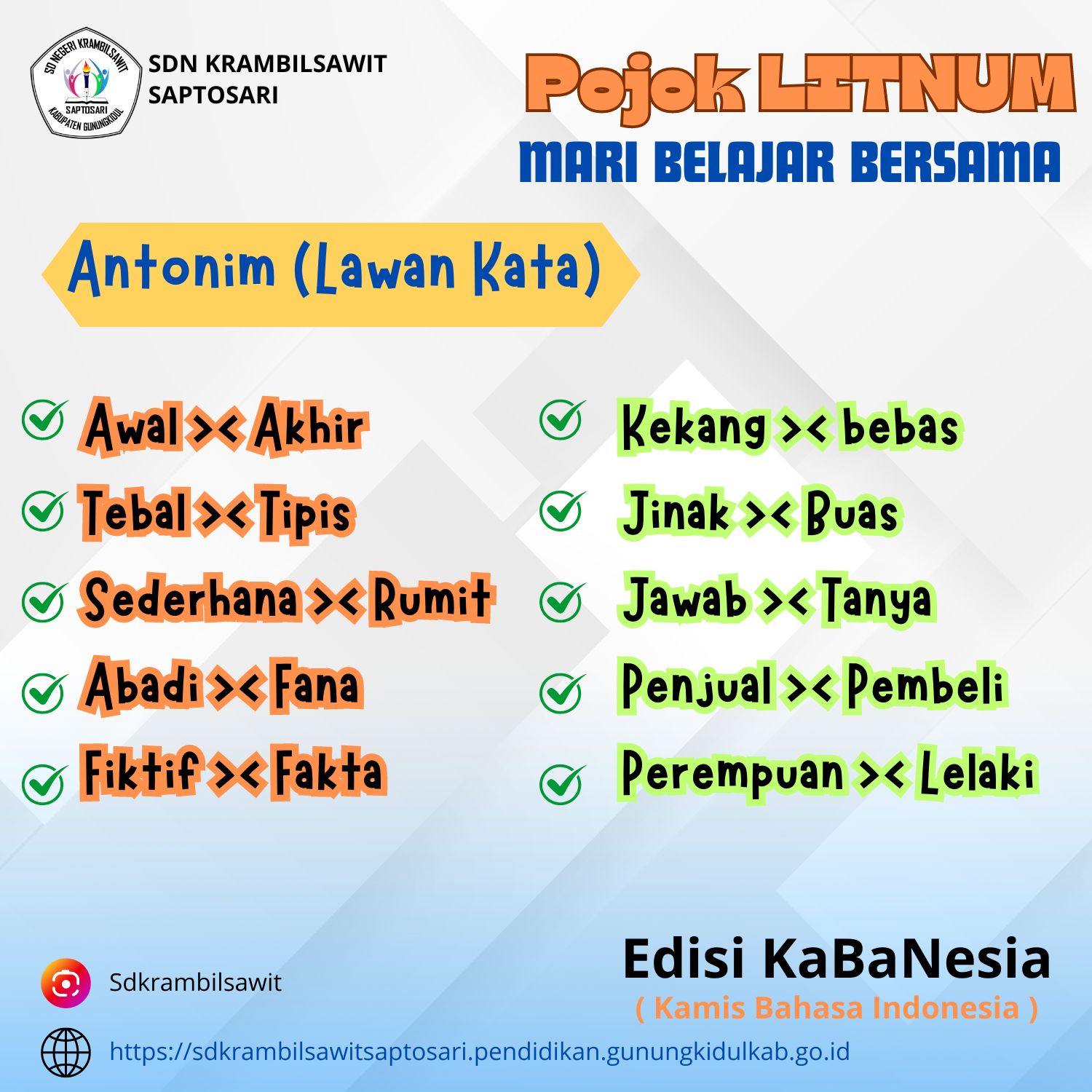 Deskripsi : Pojok LitNum ( Literasi Numerasi ) edisi harian versi Digital